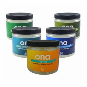 Ona Gel es un neutralizador de olores altamente eficaz, presentado en un cómodo formato de gel, diseñado para eliminar de forma discreta y continua los olores no deseados en tu zona de cultivo u otros espacios. Su popularidad se debe a años de investigación y desarrollo que han perfeccionado una fórmula única, mezclando los potentes agentes neutralizantes de Ona con elementos en suspensión para asegurar una dispersión óptima y controlada.