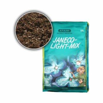 El Janeco Light Mix de Atami es un sustrato de tierra de calidad, diseñado para ser una base ideal para el cultivo de casi todo tipo de plantas, tanto en interior como en exterior. Su característica principal es que es un sustrato «light mix» o «ligero», lo que significa que viene ligeramente pre-fertilizado, proporcionando una cantidad de nutrientes suficiente para el inicio del ciclo de vida de la planta (aproximadamente las primeras 1-3 semanas, dependiendo del tamaño de la planta y la maceta). Esto lo diferencia de los sustratos «all mix» que vienen más cargados de nutrientes para un periodo más prolongado.