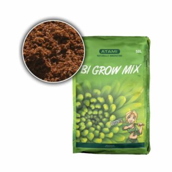 Atami Bi Grow Mix en su presentación de 50 litros es un sustrato de tierra orgánico de alta calidad, diseñado para ofrecer una base de cultivo equilibrada y nutritiva, ideal para el crecimiento vegetativo de una amplia variedad de plantas. A diferencia de su «hermano mayor» Kilomix, Bi Grow Mix está pre-fertilizado de forma más moderada, lo que lo hace perfecto para plantas jóvenes o para cultivadores que desean tener un mayor control sobre la nutrición desde una etapa más temprana, sin comprometer un buen inicio.