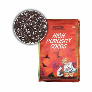 El High Porosity Cocos de Atami es un sustrato de cultivo premium, resultado de una cuidadosa mezcla de la reconocida fibra de coco de Atami con perlita volcánica. Esta combinación está diseñada específicamente para maximizar la aireación y el drenaje del medio, creando un entorno radicular óptimo que beneficia el crecimiento y la salud general de las plantas, especialmente en sistemas que demandan riegos muy frecuentes o en condiciones ambientales donde la oxigenación de las raíces es crucial.