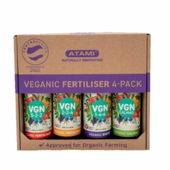 El Pack 4 Veganic 250ml de Atami representa una innovadora y ética solución de nutrición para cultivadores que buscan un enfoque 100% vegano y orgánico para sus plantas. Este kit no es solo un conjunto de fertilizantes; es una declaración de principios que combina la efectividad de la nutrición vegetal de alto rendimiento con el compromiso con la sostenibilidad, el respeto animal y la pureza del producto final. Atami, una marca reconocida por su investigación y desarrollo en el sector de la jardinería, ha diseñado esta línea Veganic para satisfacer las demandas de un mercado cada vez más consciente.