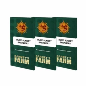 - Blue Sunset Sherbert Feminizadas 5+2 59,23 € IVA INCLUIDOLa Blue Sunset Sherbert Feminizada de Barney’s Farm es una variedad de cannabis híbrida que destaca por su perfil aromático complejo, sus efectos potentes y su alta producción de resina. Es el resultado del cruce entre Sunset Sherbet y Purple Punch, dos variedades conocidas por sus intensos sabores y efectos. Esta combinación genética da como resultado una planta con predominancia índica (65% índica / 35% sativa), lo que se traduce en efectos relajantes y placenteros.