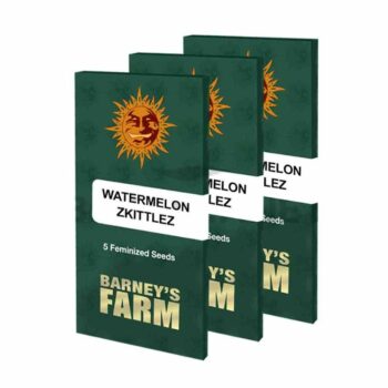 - Watermelon Zkittlez Feminizadas 3+1 33,82 € IVA INCLUIDOWatermelon Zkittlez es una variedad de cannabis feminizada que combina lo mejor de las genéticas afrutadas y dulces. Es conocida por su sabor intenso y afrutado, así como por sus efectos potentes y equilibrados. Barney’s Farm ha creado esta variedad cruzando Watermelon con Zkittlez, dos variedades muy apreciadas por sus perfiles de terpenos únicos.