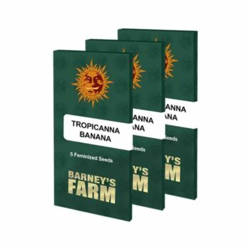- Tropicanna Banana Feminizadas 5+2 60,26 € IVA INCLUIDOLa Tropicanna Banana de Barney’s Farm es una variedad de cannabis feminizada que destaca por su perfil genético único, su aroma y sabor exquisitos, y sus efectos equilibrados. Es el resultado de un cruce entre Tropicanna (Girl Scout Cookies x Tangie) y Banana Kush, dos variedades conocidas por sus características excepcionales.