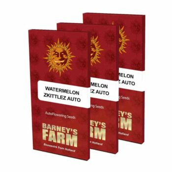 - Watermelon Zkittlez Auto-Feminizadas 3+1 33,82 € IVA INCLUIDOWatermelon Zkittlez Auto es la versión autofloreciente de la popular Watermelon Zkittlez, conservando su perfil de sabor dulce y afrutado, pero con la ventaja de un cultivo más rápido y sencillo. Barney’s Farm ha cruzado Watermelon Zkittlez con BF Super Auto #1 para crear esta variedad autofloreciente.