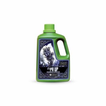 PH Up de Emerald Harvest es una solución alcalina diseñada para incrementar el nivel de pH en soluciones nutritivas, un aspecto crucial para optimizar la absorción de nutrientes en cultivos hidropónicos, en tierra o en coco. Generalmente, utiliza hidróxido de potasio (KOH) como ingrediente activo, conocido por su alta eficacia en el aumento del pH. Este compuesto se disuelve rápidamente en agua, lo que permite una distribución uniforme en la solución nutritiva.