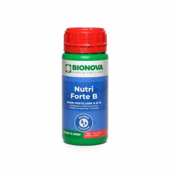 NutriForte B de Bionova es un fertilizante mineral líquido, altamente concentrado y de dos componentes (parte A y parte B), específicamente formulado para ser el nutriente base principal durante toda la fase de floración y fructificación de las plantas cultivadas en sistemas de cultivo con sustrato, principalmente tierra. Representa una solución nutricional de vanguardia que busca maximizar el rendimiento y la calidad de las cosechas al proporcionar un balance preciso de todos los elementos esenciales requeridos durante la etapa reproductiva de la planta.