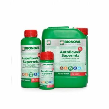 Autoflower SuperMix de Bionova se presenta como una solución nutritiva integral y de un solo componente, meticulosamente diseñada para simplificar la alimentación de plantas autoflorecientes a lo largo de todo su ciclo de vida, desde la germinación de la semilla hasta la cosecha final. Este fertilizante único elimina la necesidad de múltiples productos, ofreciendo una fórmula equilibrada y completa que satisface las demandas nutricionales específicas de las variedades autoflorecientes en cada una de sus fases de desarrollo: crecimiento vegetativo, floración y fructificación. Imagina un «todo en uno» que proporciona a tus plantas autoflorecientes todos los macro y micronutrientes esenciales en las proporciones adecuadas, liberándote de la complejidad de mezclar diferentes fertilizantes y asegurando un crecimiento saludable, una floración abundante y una cosecha generosa.