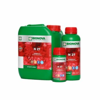 N27 de Bionova se presenta como un fertilizante nitrogenado altamente concentrado y de acción rápida, meticulosamente formulado para proporcionar un impulso significativo de nitrógeno (N) a las plantas durante la crucial fase de crecimiento vegetativo, así como para corregir de manera eficiente y visible las deficiencias de este macronutriente esencial en cualquier etapa de su desarrollo. Este producto se distingue por su enfoque singular en la entrega de nitrógeno en una forma rápidamente asimilable por las raíces, actuando como un catalizador potente para el desarrollo de un follaje exuberante y de color verde intenso, un crecimiento vigoroso de tallos y ramas, y la formación de una estructura vegetal robusta y saludable. Imagina una inyección directa del elemento fundamental para la construcción de la «maquinaria verde» de la planta, impulsando la fotosíntesis, la síntesis de proteínas y el crecimiento general con una eficacia notable y visible en un corto período de tiempo.