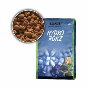 Atami Hydro Rokz en su formato de 40 litros es un sustrato inerte de alta calidad, compuesto por arcilla expandida cocida (arlita) cuidadosamente seleccionada y procesada. Este medio de cultivo ha sido diseñado específicamente para satisfacer las exigentes demandas de los sistemas hidropónicos, pero también se ha convertido en una opción predilecta para mejorar las propiedades físicas de otros sustratos.