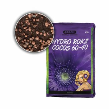 Atami Hydro Rokz Cocos 60-40 en su formato de 45 litros es un sustrato innovador y versátil que representa una combinación estratégica de dos de los medios de cultivo más populares y efectivos: la arcilla expandida (arlita) y la fibra de coco. Esta mezcla preproporcionada, con un 60% de Hydro Rokz (arlita) y un 40% de fibra de coco, ha sido diseñada para maximizar los beneficios de ambos materiales, ofreciendo un equilibrio óptimo para una amplia gama de sistemas de cultivo, especialmente la hidroponía y el cultivo en macetas con coco.